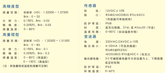 TRF型在线溶液浓度计是一种基于光学临界角测量原理的高精度在线仪器,主要用于工业生产过程中产品品质的控制和保证,既可以用来做原料和成品的质量管控,也可以作为工艺过程控制系统的有机组成部分。例如,监控可溶性固体在溶液中的浓度、控制液体间的混合比例或者化学反应的进程等等。采用在线测量工具来进行产品的质量控制已经被广泛认同:并应用到越来越多的工业生产过程中。
